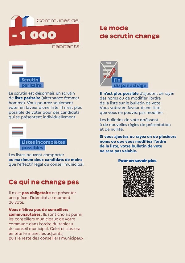 NOUVEAU MODE DE SCRUTIN POUR LES COMMUNES DE MOINS DE 1000 HABITANTS